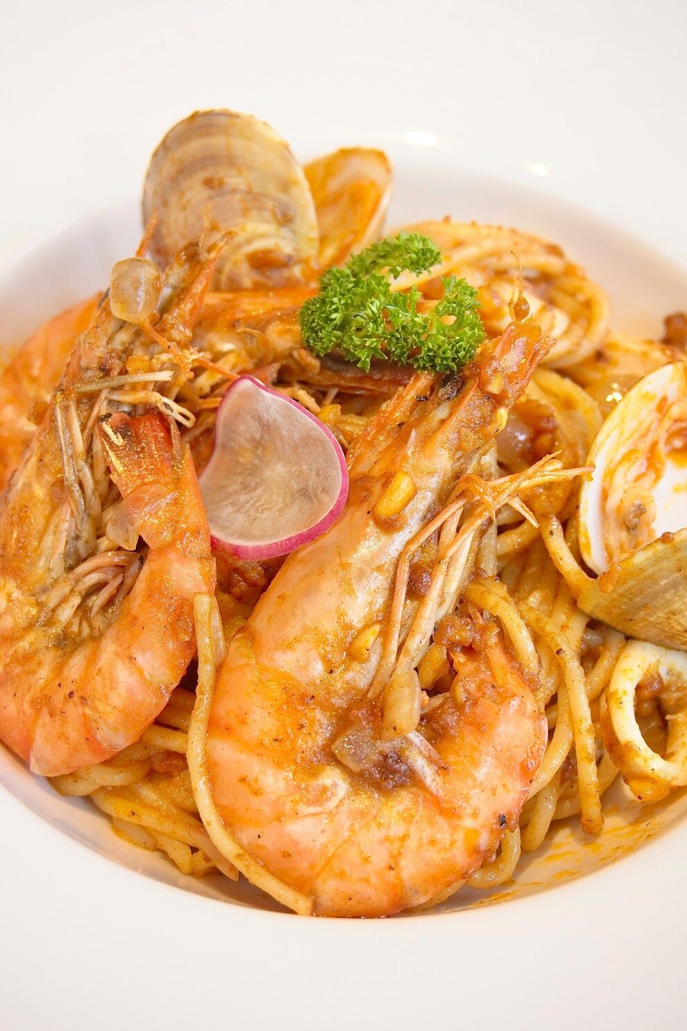 Изысканное блюдо, сочетающее нежные морепродукты с ароматным соусом на основе оливкового масла, чеснока и свежих трав. Легкое и вкусное, оно идеально подходит для любителей морской кухни.